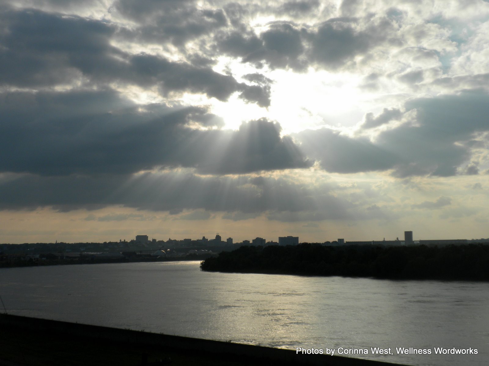 Sunbeams on the Missouri River over Kansas City, KS. Pollution and water rights are big, but not my focus......