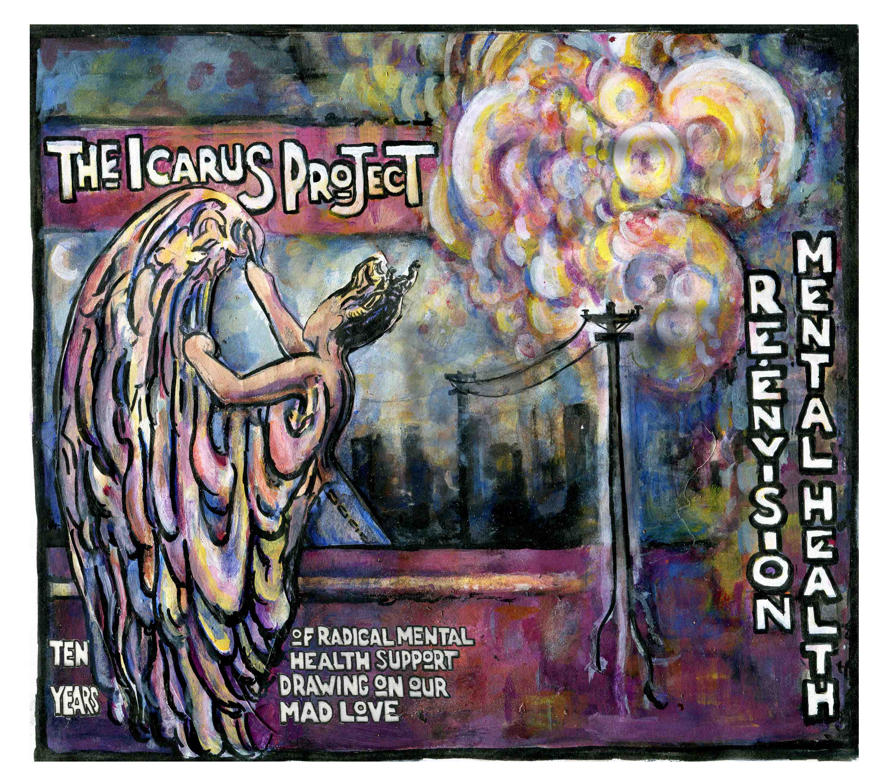 It started with a crazy story that a bunch of people read in a San Francisco newspaper that generated a meeting of Sascha Altman Dubrul and Jacks Ashley McNamara, two strangers with big ideas, who envisioned Icarus. What followed is that a bunch of brilliant and intense folks found each other, and helped build a community amidst the darkness perpetrated by the mainstream psychiatric model of the early 21st century. We’ve managed not only to survive with our scar songs, mad wisdom, and crooked beauty, but by 2012 to grow into an international community of activists, artists, healers, scholars, lovers, fighters, and dreamers!