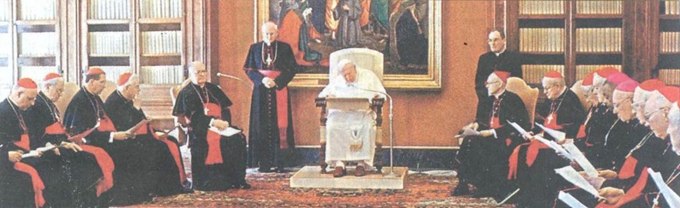 This intensely dramatic picture shows a former Pope convening the US cardinals in Rome. They were ostensibly there to put the problem of child abuse in the Church to right but it now seems that the meeting was about managing the consequences for the Church rather than for any of its victims.