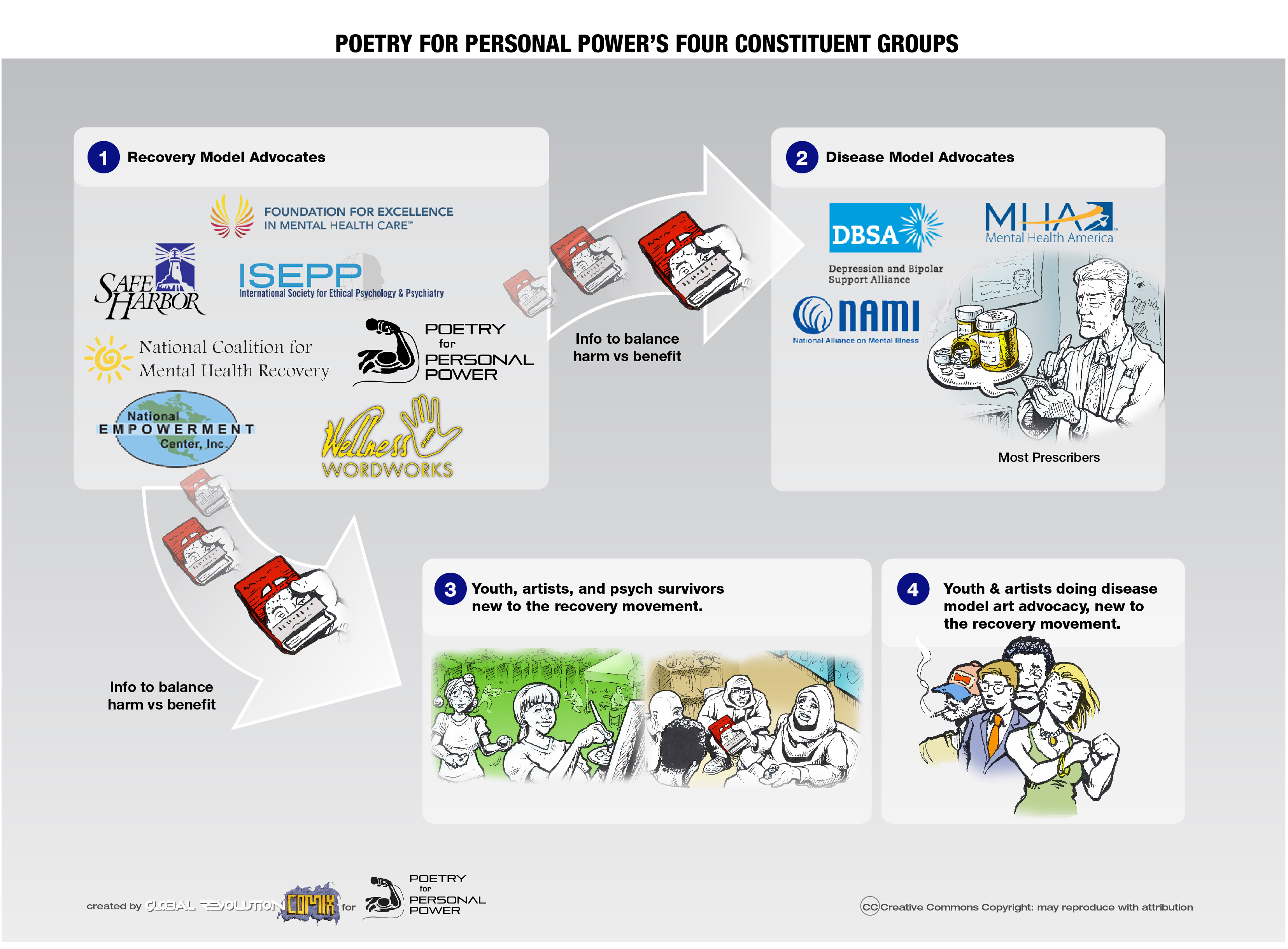 This infographic best describes Poetry for Personal Power’s relationship with NAMI and what we are doing in Denver at #NAMIcon2016. Â We are using the event to bring new people into the recovery movement and to bring more information to disease model advocates to balance harms vs. benefits.
