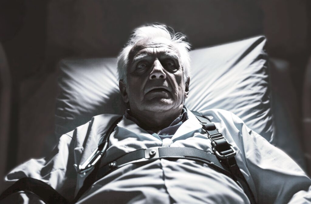 Fortunately, he did not enforce ECT again. Instead, he made my time as awful as possible with cold showers and having me hoisted in and out of bed with straps, which has had residual effects on my musculoskeletal system. I eventually had to use a wheelchair. He then transferred me to a men-only ward filled with very disturbed men. Likely criminals avoiding prison by claiming a mental health defence. Here I was given weekly depot antipsychotic injections at twice the normal dose. These made me feel worse than ever. I was returned to the Hewitt-led Aspen ward, next door to the ECT unit.